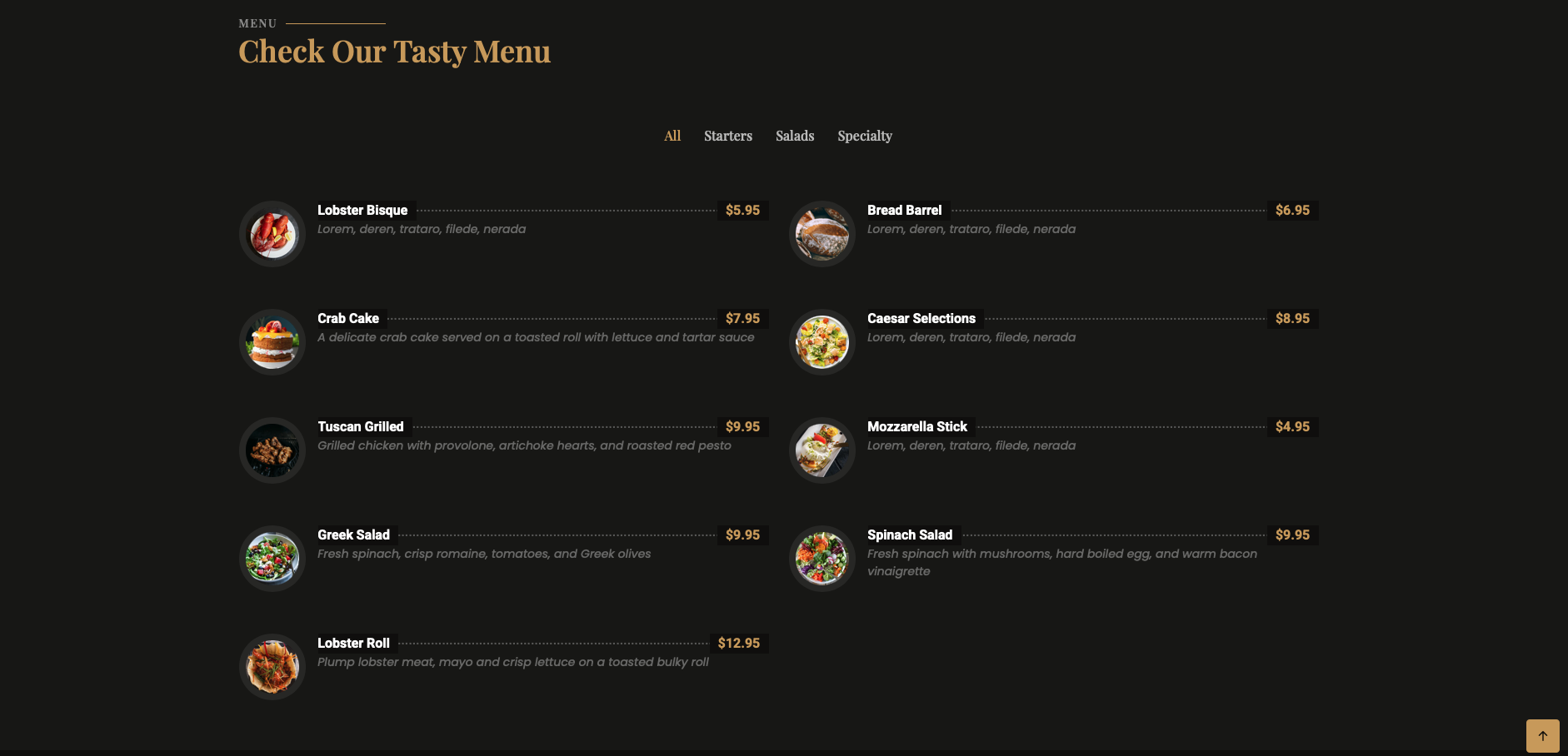 Die hier gezeigten Templates dienen als Inspiration für verschiedene Branchen und Kundentypen. In diesem Beispiel handelt es sich um ein Design für ein Restaurant. Alle Vorlagen können individuell nach den Wünschen des Kunden angepasst werden – von Design bis Inhalt.